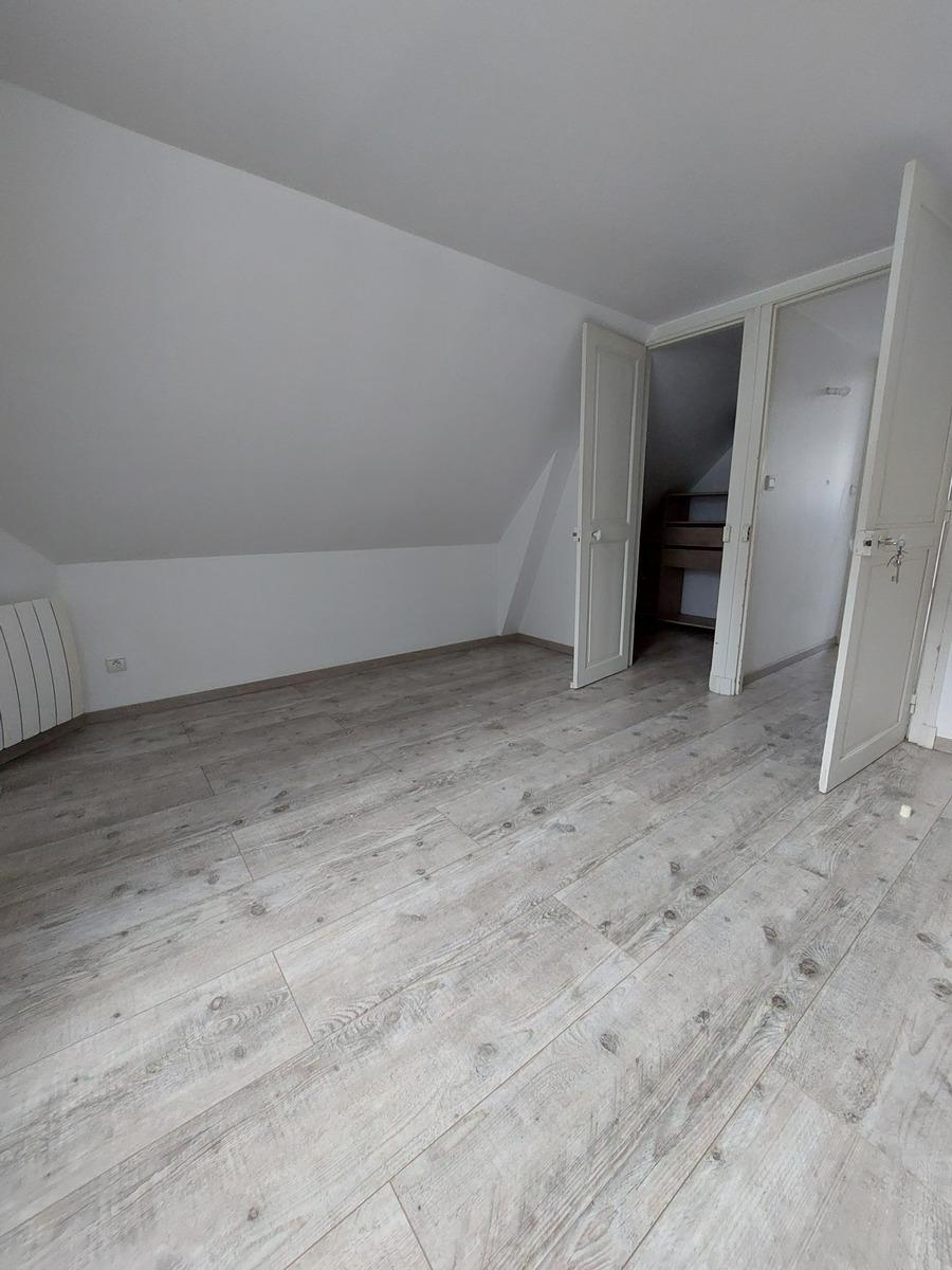 A LOUER à REIMS (51100) Dans une résidence de standing, un appartement T3 en triplex, avec entrée privative, comprenant au rez-de-chaussée un sas avec placard menant au 1er étage lequel desserre une salle de bain, un WC séparé, un grand placard, un séjour, une cuisine meublée et partiellement équipée (plaques, hotte) – au 2ème étage: 2 chambres sous pentes dont une avec dressing (surface au sol : 13,75 m² et 16,60 m²).