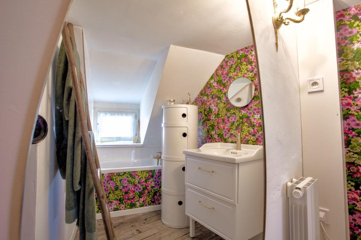 A VENDRE APPARTEMENT REIMS, Marne(51), en exclusivité, centre ville, Pont de Vesle, dans une copropriété des années 1920, un appartement en parfait état, trois pièces de 54m² situé au dernier étage, comprenant un escalier privatif, une entrée, un séjour sol parquet avec vue sur le canal, une cuisine équipée de 7m², deux chambres de 11m² et 9m² sol parquet, rangements, une salle de bains et WC. Chauffage individuel électrique. Cave. Classe énergie : E. Charges de copropriété mensuelles : 108€. Airbnb autorisé. Possibilité de stationnement en location.
