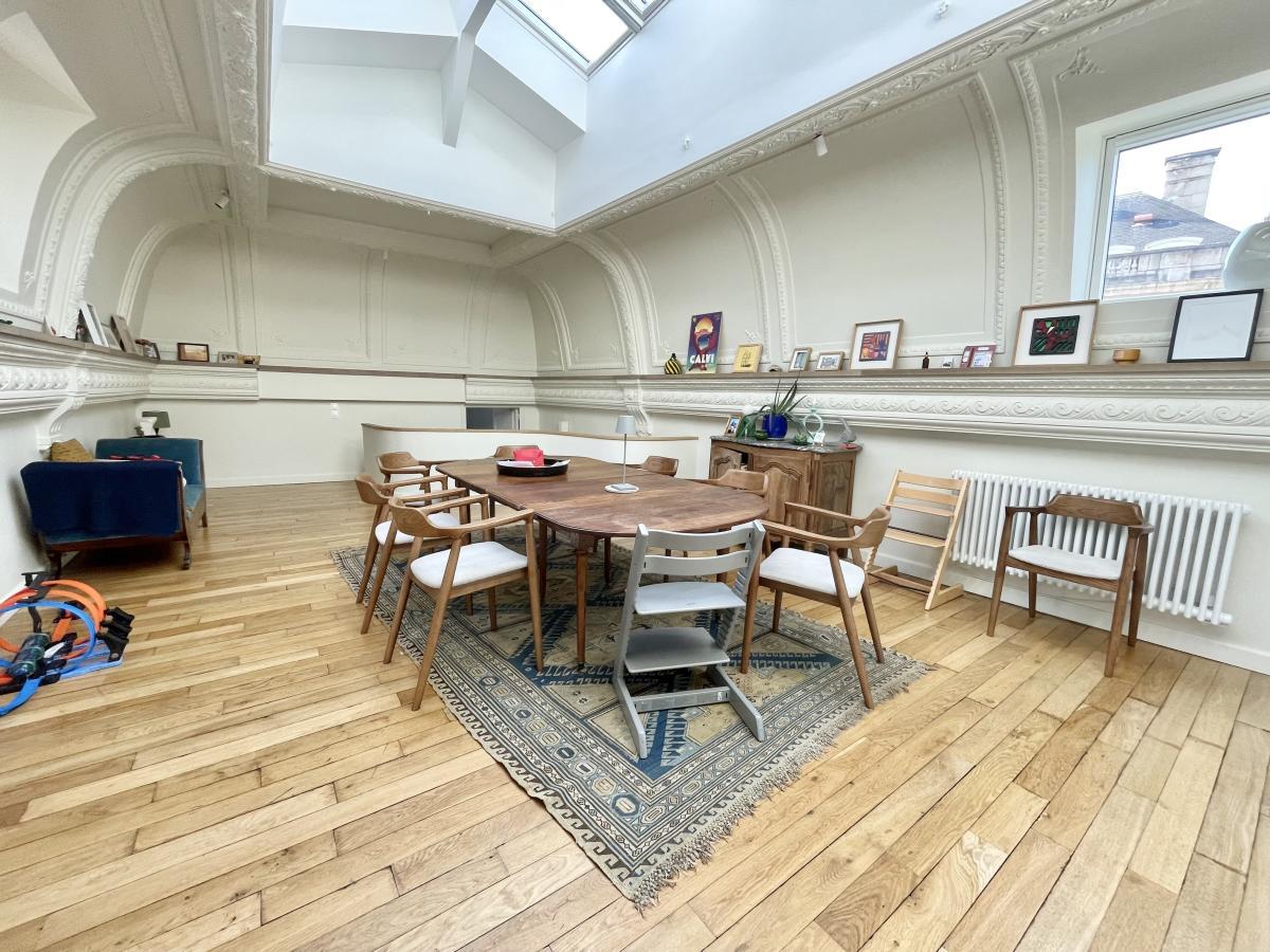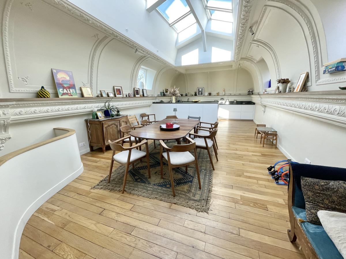 A VENDRE APPARTEMENT REIMS, Marne(51), au chevet de la cathédrale, dans un bel immeuble de caractère, un appartement duplex 6 pièces comprenant une entrée avec rangement, une chambre de 18 m² avec sa salle de bains, 2 chambres de 12 et 15 m², un wc, une salle de bains, une buanderie, à l ‘étage un espace salon de 20 m², une pièce de vie de 42 m²avec une cuisine ouverte équipée. Chauffage individuel électrique, classe energie : F