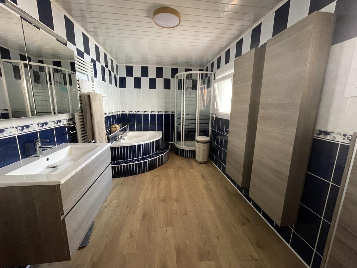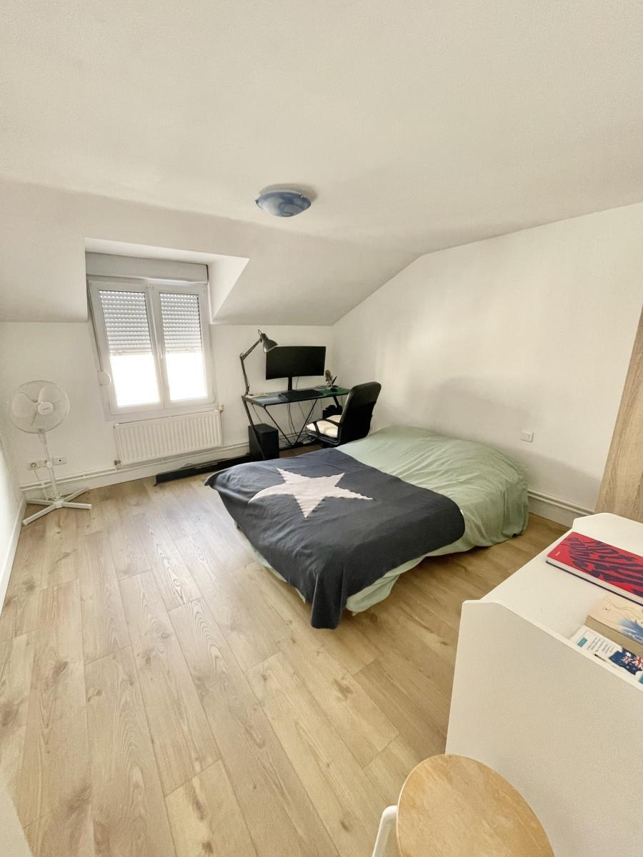 A VENDRE MAISON REIMS, Marne (51), proche avenue de Laon, accès tramway à 100 mètres, dans une rue calme une maison 6 pièces confort plain pied comprenant une belle entrée lumineuse avec un rangement, un séjour de 32 m² avec cuisine ouverte équipée, une chambre sol en parquet, une salle de bains avec wc, douche et baignoire, à l ‘étage un large palier distribuant 3 chambres sol parquet dont une avec un vélux, une salle de douche, un wc. Chauffage central au gaz. Un garage. Une cour intérieure sans vis à vis de 30 m². Classe énergie : D.